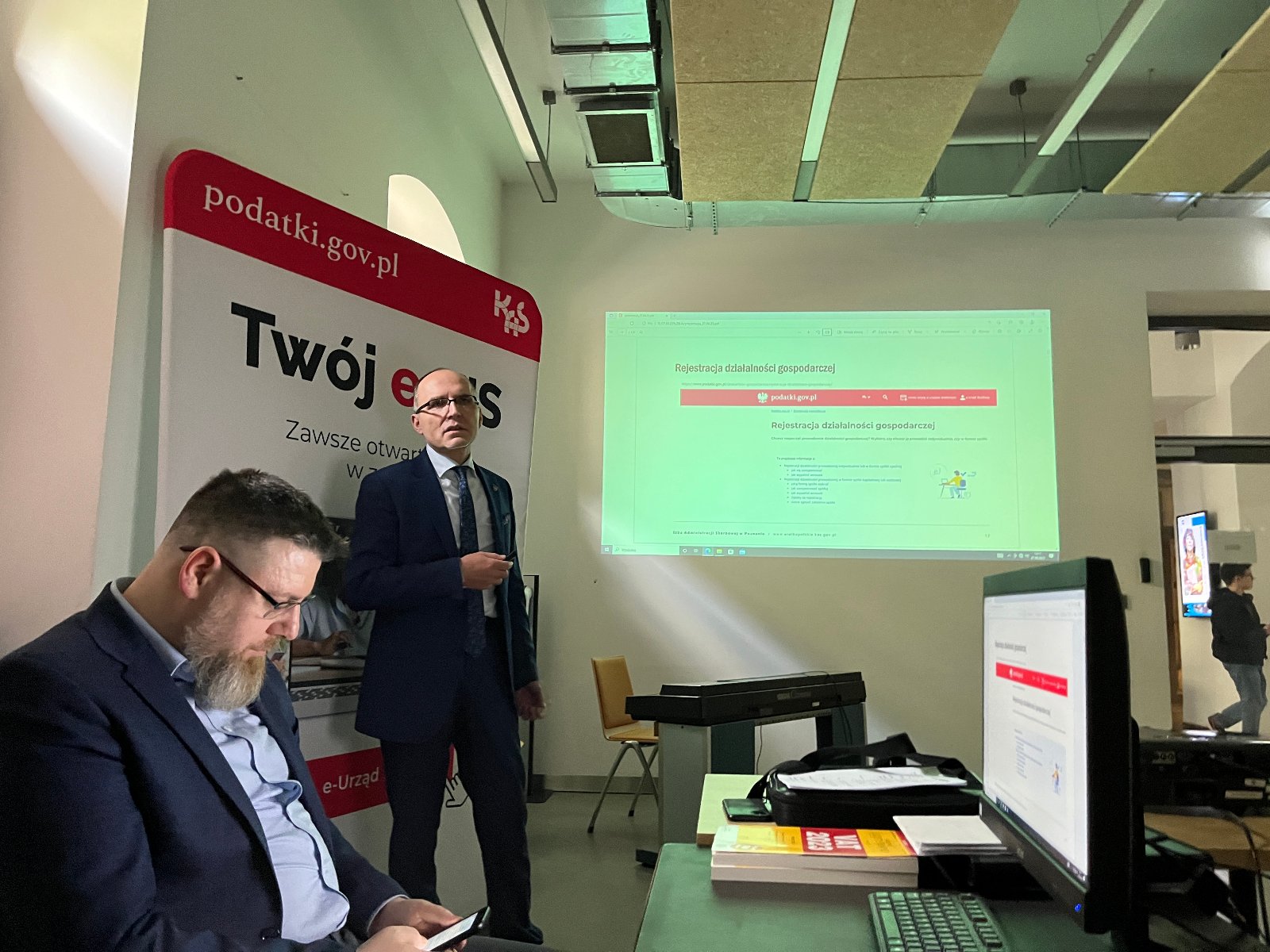 Dodatkowo, przedstawiciele Izby Administracji Skarbowej w Poznaniu wprowadzili uczestników spotkań w świat podatków, które są nieodłącznym elementem dla każdego przedsiębiorcy. Omówione zostały kluczowe zagadnienia związane z podatkiem dochodowym, rozliczeniami finansowo-księgowymi i podatkiem VAT. Niezwykle istotne były również zajęcia prowadzone przez Radcę Prawnego, Pana Bartosza Jóźwiaka z Kancelarii Prawnej Kolegial, które poświęcone były prawu autorskiemu i własności intelektualnej. Uczestnicy mieli okazję zdobyć cenne informacje dotyczące ochrony swoich twórczych dzieł i praw autorskich w kontekście prowadzenia działalności gospodarczej.