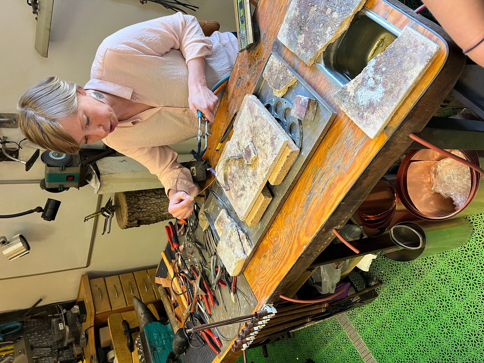 Studenci Uniwersytetu Artystycznego im. Magdaleny Abakanowicz w Poznaniu mieli możliwość zobaczyć jak wygląda biznes okiem artystki podczas stacjonarnych zajęć w pracowni OYCA, prowadzonej przez Panią Agnieszkę Frankowską-Gryza. W trakcie prezentacji uczestnicy dowiedzieli się na czym polega praca złotnika-metaloplastyka, a także jakie prace artystyczne tam powstają. Ponadto Pani Agnieszka podzieliła się swoim doświadczeniem na temat formalności związanych z prowadzeniem działalności w branży artystycznej.