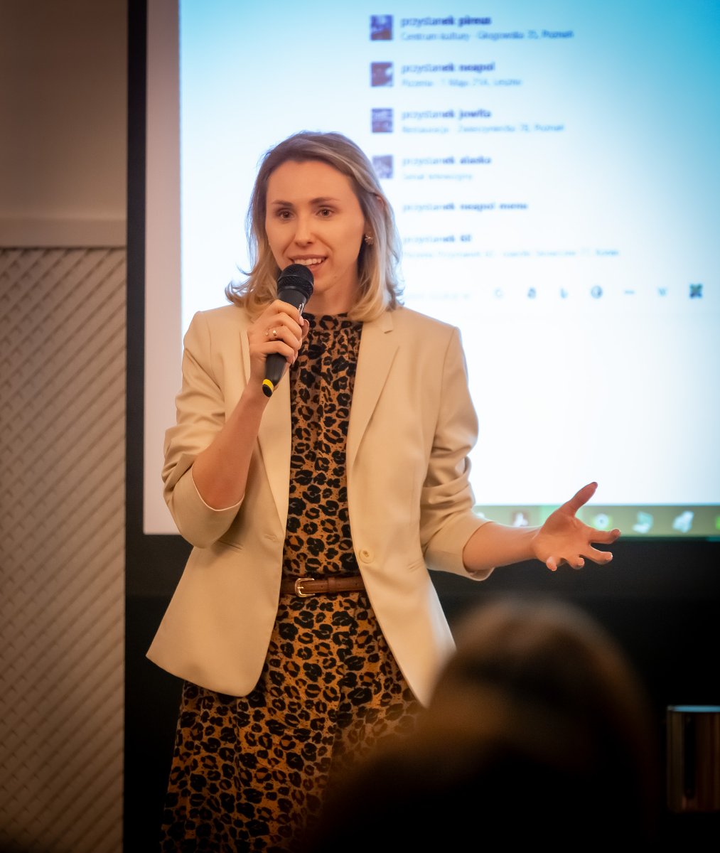 Niespodzianką konferencji była Agnieszka Baranowska, która przyszła na wydarzenie jako uczestniczka, a wyszła jako prelegentka! Agnieszka zdecydowała się podzielić swoją historią i doświadczeniem z uczestniczakami i uczestnikmi, gdy dowiedziała się, że ostatnia prelegentka nie dotrze na wydarzenie. Po godzinie wewnętrznego dialogu, Agnieszka podjęła odważną decyzję i weszła na scenę, aby opowiedzieć o budowaniu pewności siebie i tożsamości zawodowej. Jej spontaniczna decyzja była doskonałym przykładem odważnego działania w praktyce i świetnie wpasowała się w tematykę konferencji.