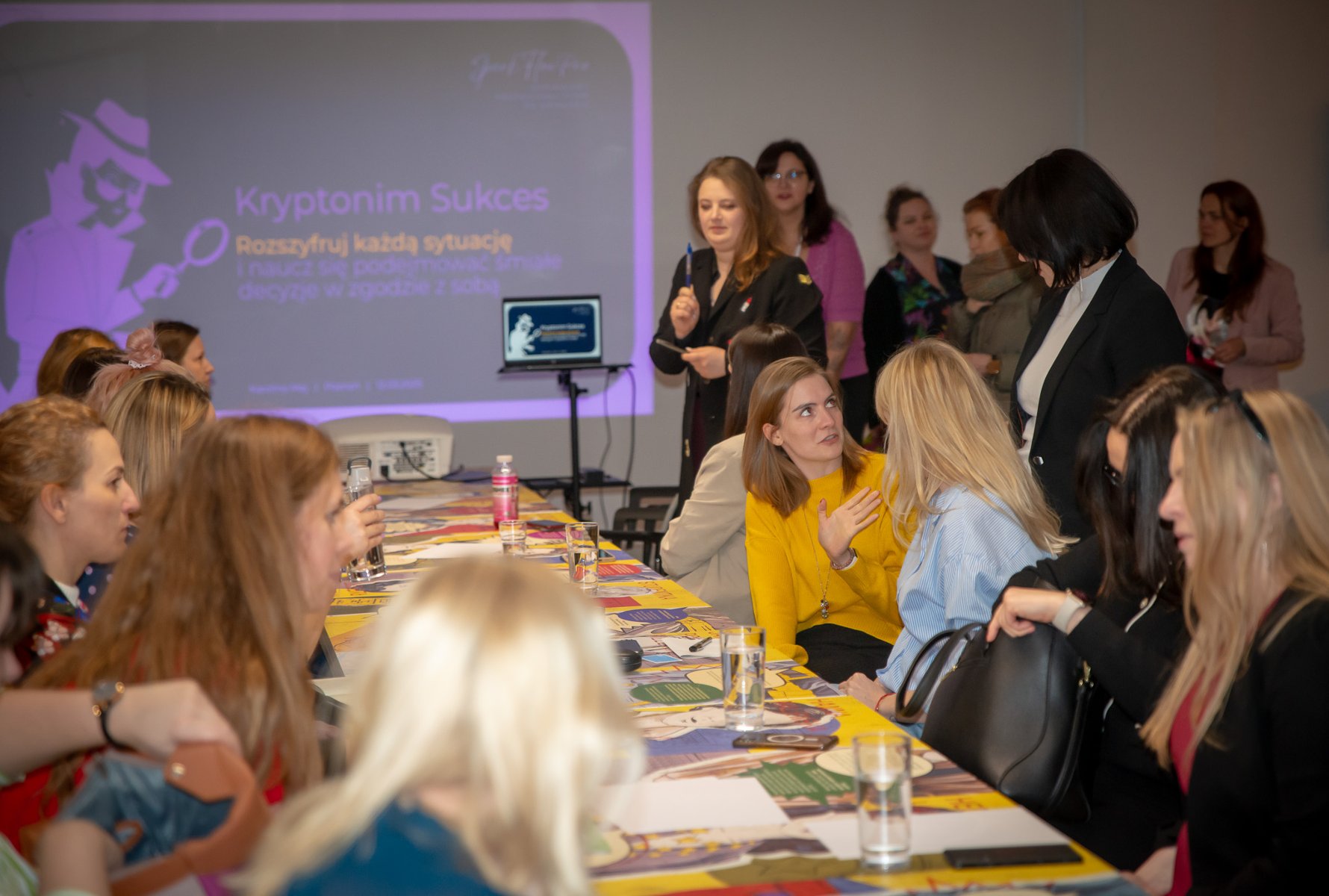 Po częsci prelekcyjnej odbył się warszatat pt. "Kryptonim Sukcesu: Rozszyfruj każdą sytuację i naucz się podejmować śmiałe decyzje w zgodzie ze sobą", w którym wzięło udział 28 uczestniczek. warsztat poprowadziła Karolina Maj z Spark Flow Pro. Uczestniczki miały okazję wziąć udział w ćwiczeniach, takich jak "Mapa decyzji", "Decyzja pod presją" czy "Granice, które chronią i wzmacniają", które pozwoliły na praktyczne przećwiczenie podejmowania decyzji w różnych scenariuszach. Dużo ożywionej dyskusji dotyczyło wyzwań związanych z konsekwencjami wyborów i elastycznością w zmieniających się warunkach, a także sposobami na skuteczne rozpoznawanie ryzyka.Warsztat okazał się doskonałą okazją do wymiany doświadczeń i inspiracji między uczestniczkami, które wspólnie analizowały swoje dotychczasowe wybory oraz zastanawiały się nad sposobami na wzmocnienie swojej decyzji w trudnych sytuacjach.