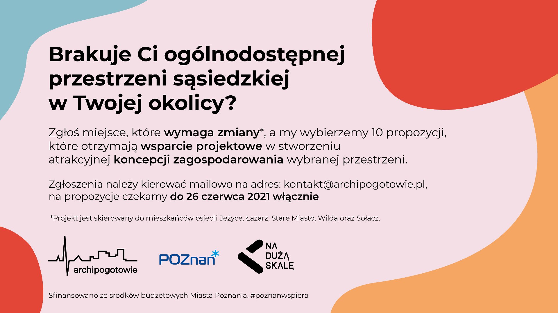 Akcja jest skierowana do mieszkańców Starego Miasta, Jeżyc, Łazarza, Wildy i Sołacza. Mogą oni zgłosić miejsca, które ich zdaniem wymagają zmian. Fundacja na Dużą Skalę, wyłoniona przez Miasto w otwartym konkursie ofert, wybierze 10 propozycji, które otrzymają wsparcie projektowe w tworzeniu atrakcyjnych koncepcji zagospodarowania przestrzeni sąsiedzkiej (podwórek, przedogródków lub innej wspólnej przestrzeni, która może zyskać nowe oblicze).