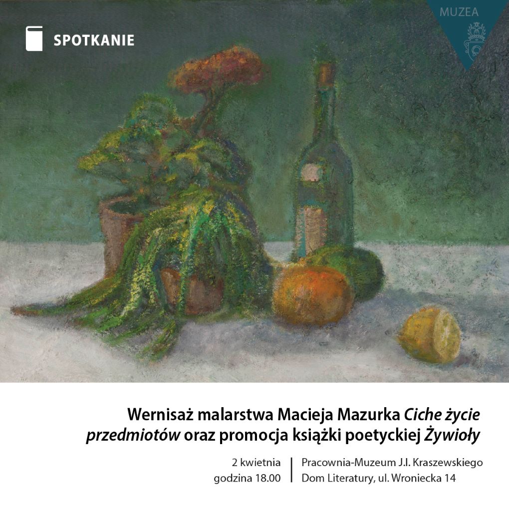 "Ciche życie przedmiotów" to wystawa martwych natur dr Macieja Mazurka, malarza, poety, eseisty.