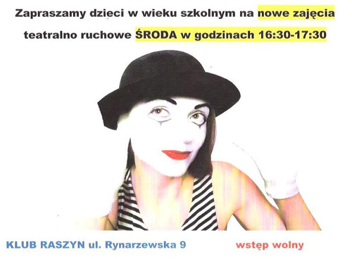 Organizatorzy zapraszają na bezpłatne zajęcia z pantomimy dla dzieci prowadzone przez Patrycję Kozyra.