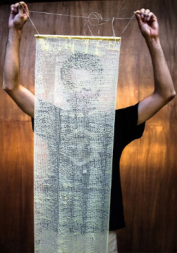 Drobne otwory w świetlisto-żółtej materii tkanin tworzą strukturę przypominającą kod. Możemy nazwać go hipotetycznym zapisem "mowy" pszczelej w formie nieznanego nam pisma, a podążając tym tropem, całość instalacji Biblioteką lub Archiwum wiedzy, której nie potrafimy odczytać. Podobne w swej strukturze formy zapisu znamy z języka Braille'a, kodu Morse'a, z perforowanych kart pamięci pierwszych komputerów czy też z żakardowych krosien tkackich. Istotą projektu jest spotkanie, współpraca i komunikacja służąca nie tyle przekazywaniu informacji, co nawiązywaniu relacji i budowaniu więzi. Rozumiane są one jako punkt wyjścia do tworzenia nowych modeli myślenia o przyszłości, której niepewność w obliczu zmian klimatycznych przeczuwamy (i już doświadczamy).