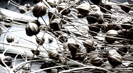 Czym jest len? Czy len jest kwiatem? Opowiadane historie utrwalone na lnianych obrazkach przetwarzają się w świat tkany wyobraźnią.