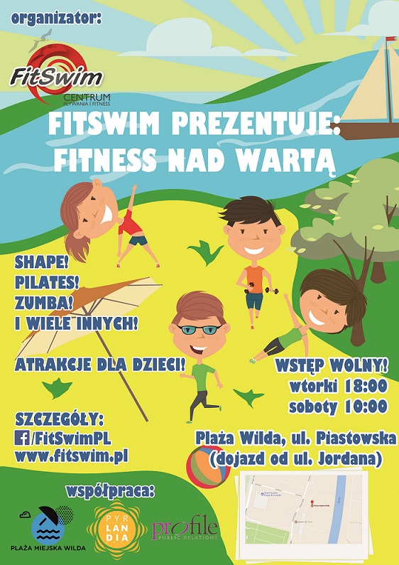 W lipcu i sierpniu na Plaży Miejskiej Wilda odbędą się cykliczne zajęcia fitness - m.in. shape, pilates i zumba. Czas umilą również liczne atrakcje przygotowane dla najmłodszych. Zajęcia odbywać się będą w kazdy wtorek o godzinie 18:00 oraz każdą sobotę o godzinie 10:00. Organizatorem zajęć jest Centrum Pływania i Fitness FitSwim. Udział w zajęciach jest bezpłatny.