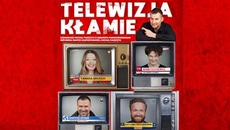 Na scenie pojawią się też Krzysztof Zniemiec, Tomasz Karmel i Marcin Prochop...i publiczność jako telewidz, który może wybrać, jaką telewizję chce oglądać w spektaklu. A do wyboru jest TVP, TVN, Polsat i TV Trwam. Autor spektaklu, Michał Paszczyk z kabaretu Paranienormalni, gwarantuje, że popłaczecie się.... ze śmiechu!