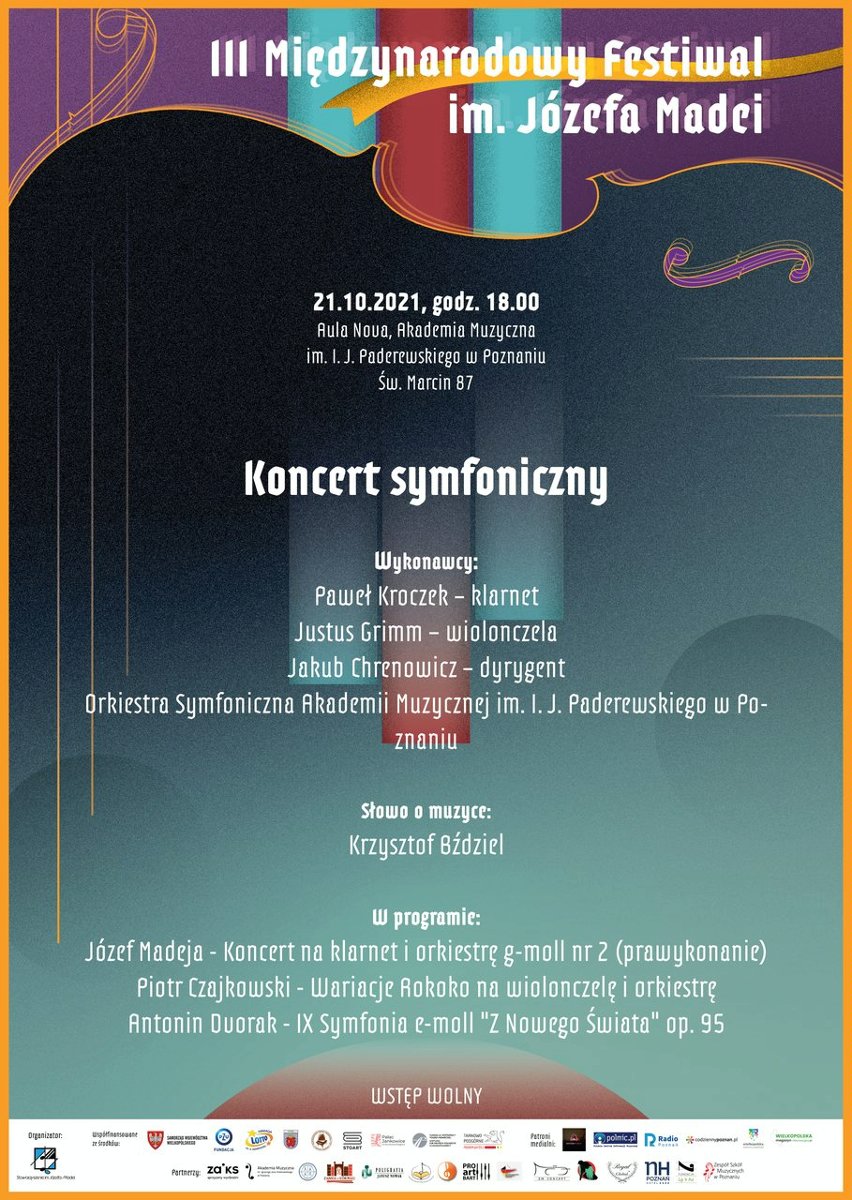W dniu 21.10.2021 roku o godzinie 18.00 w Auli Nova Akademii Muzycznej im. I. J. Paderewskiego w Poznaniu usłyszymy znakomitych solistów: Justusa Grimma (wiolonczela) oraz Pawła Kroczka (klarnet). Solistom będzie towarzyszyć Orkiestra Symfoniczna Akademii Muzycznej im. I. J. Paderewskiego w Poznaniu pod dyrekcją Jakuba Chrenowicza.