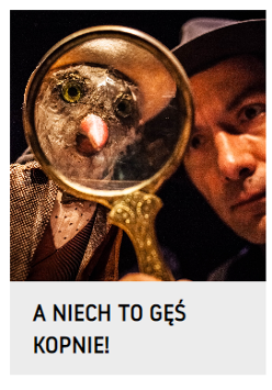 Ale czy tak naprawdę Ją znamy? Czy zastanawialiście się kiedyś, co w takiej Gęsi siedzi? O czym myśli? O czym marzy? Twórcy spektaklu "A niech to Gęś kopnie!" zadali sobie to trudne pytanie i ku wielkiemu zdziwieniu odkryli smutna prawdę: Gęś - przynajmniej ta nasza - ma depresję. Jest chuda, brzydka i nie ma przyjaciół - jedyne, co ma to ów wielki smutek, przyczepiony do niej mocno, niczym jesienny liść do podeszwy mokrego buta. Czy Gęś odnajdzie swoje szczęście? Czy uśmiech na powrót zagości na jej dziobie?
