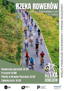 Popłyń z nurtem rowerowej rzeki! 14-stego lipca po raz kolejny Stowarzyszenie Rowerowy Poznań i Poznańskie Centrum Dziedzictwa organizuje rowerową paradę, która rozpocznie się na Wolnym Dziedzińcu Urzędu Miasta Poznania a zakończy się nad brzegiem Cybiny pod Bramą Poznania. Letnie popołudnie spędzimy na rodzinnym pikniku z mnóstwem atrakcji.