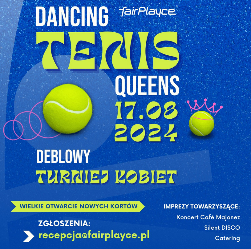 Z okazji otwarcia nowych kortów zewnętrznych fairPlayce zaprasza na pierwszy deblowy turniej dla kobiet. Dla uczestniczek organizatorzy przewidzieli catering, koncert Teatru Muzycznego w Poznaniu oraz Silent Disco na zakończenie turnieju.