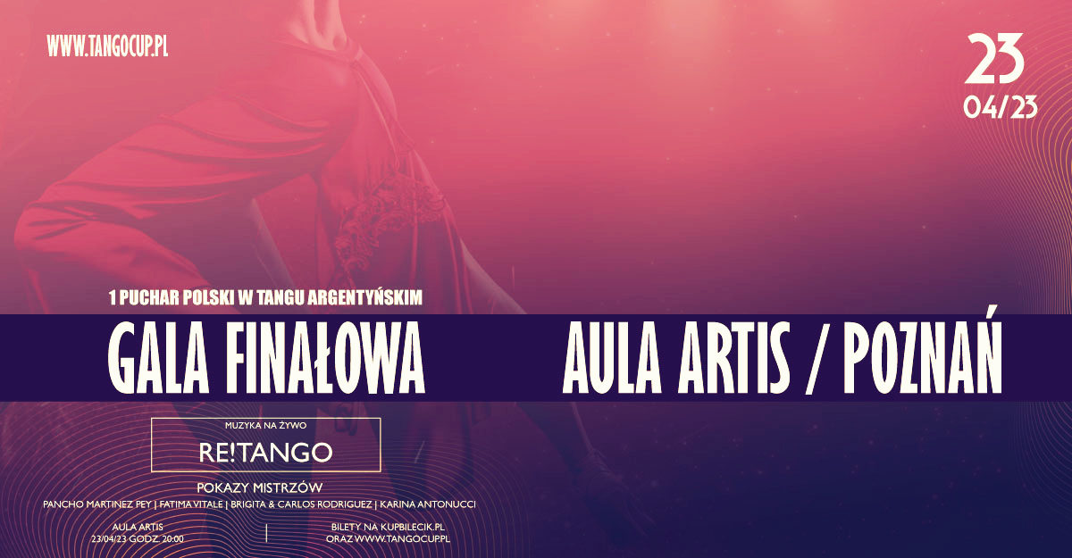 Z inicjatywy Polskiego Związku Tanga Argentyńskiego (pzta.org) Poznań będzie gospodarzem pierwszych historycznych zawodów w tangu argentyńskim w Polsce. Ich zwieńczeniem będzie uroczysta GALA FINAŁOWA w formie TANGO SHOW - z muzyką na żywo, pokazami Mistrzów z Buenos Aires (Sędziów podczas zawodów) oraz pokazem zwycięskich par finałowych.