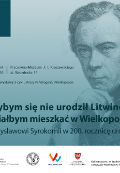 Wernisaż wystawy z cyklu "Kresy w fotografii Wielkopolan", nawiązującej także do podróży Władysława Syrokomli po Wielkopolsce w 1858 roku. Zdanie z listu poety na Litwę, będące inspiracją do powstania wystawy "Gdybym się nie urodził Litwinem, chciałbym mieszkać w Wielkopolsce" zarazem stało się jej tytułem. Motywem przewodnim ekspozycji jest relacja - zafascynowanego "kolebką Polski" poety - "Podróż swojaka po swojszczyźnie", a współczesne fotografie ilustrują opisy niektórych odwiedzanych przez niego miejsc. Syrokomla poetycko debiutował w "Athenaeum" - czasopiśmie wydawanym przez Kraszewskiego, z którym przez lata korespondował i który tuż po śmierci "lirnika wioskowego" napisał jego biografię.