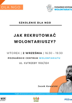 Szkolenie "Jak rekrutować wolontariuszy?" przeznaczone jest dla osób koordynujących wolontariat w organizacjach pozarządowych.