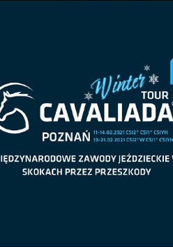 CAVALIADA Winter Tour to zawody w skokach przez przeszkody w randze CSI2*, CSI2*W, CSI1* i CSIYH, a także CAVALIADA Future, które planowane są w terminie 11-14.02 oraz 18-21.02.2021. Po raz pierwszy w 11-letniej historii Cavaliady, w Poznaniu zorganizowany zostanie dwutygodniowy tour.