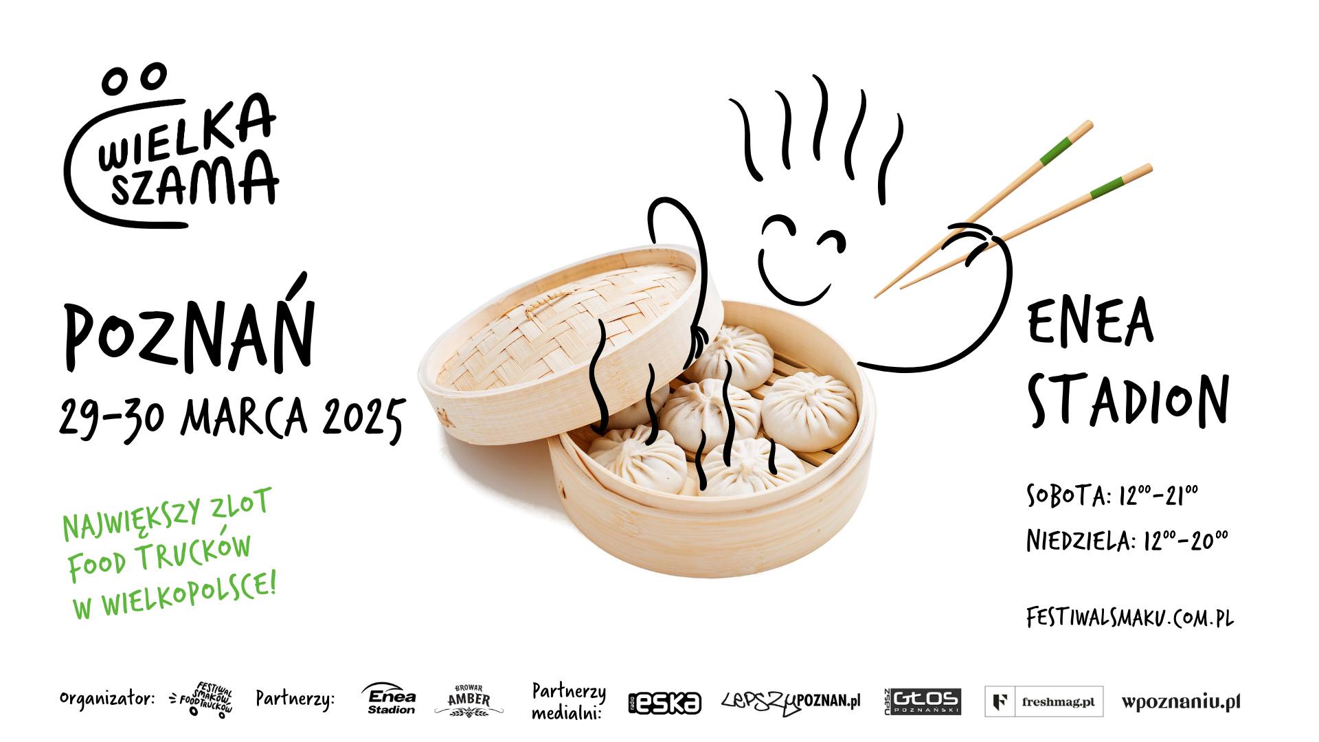 "Wielka Szama" to największy zlot foodtracków w Wielkopolsce. Podczas wydarzenia będzie można zasmakować potraw z kuchni całego świata np. gruzińskich chinkali, meksykańskich tacos czy węgierskich langoszy. Na miejscu będą również: kącik artystyczny dla dzieci, strefa kolorowych dmuchańców i zawody jedzenia na czas.