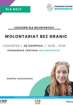 Warsztat poprowadzi Kamila Lenczewska - pasjonatka wolontariatu w edukacji pozaformalnej i transkulturowej. Organizatorka projektów europejskich w tym Europejskiego Korpusu Solidarności oraz przewodnicząca Centrum Inicjatyw Międzykulturowych Horyzonty. Związana z wolontariatem od dziecka, połączyła z nim swoje życie, sama biorąc udział w wolontariacie europejskim w Hiszpanii, koordynując i organizując wolontariat osób z zagranicy w Poznaniu i wysyłając osoby z Polski na wolontariat zagranicą. Szkolenie jest bezpłatne. Organizatorzy wystawiają zaświadczenie o uczestnictwie. Projekt sfinansowano ze środków budżetowych Miasta Poznania.