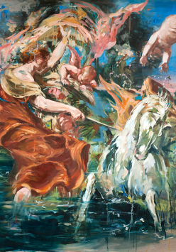 Julia Medyńska - urodzona w 1981 roku w Gdańsku, malarka, ilustratorka i aktorka. Julia urodziła się w socjalistycznej Polsce. W 1985 roku jej rodzinie udało się uciec do Berlina Zachodniego. Po ukończeniu szkoły średniej przeniosła się do Nowego Jorku, gdzie studiowała aktorstwo. Uczęszczała do Lee Strasberg Theatre Institute oraz Neighborhood Playhouse. Julia występowała w Off-Broadway'owym Manhattan Ensemble Theatre. W 2009 roku Julia wróciła do szkoły, aby zdobyć tytuł licencjata oraz magistra sztuk wizualnych na Uniwersytecie Columbia. Figuratywne obrazy Julii, będące pod silnym wpływem jej aktorskiego wykształcenia, są skomponowanymi narracjami, które zgłębiają ideę społecznej maski używanej do ukrycia ukrytych prawd psychologicznych. Julia jest stypendystką Fundacji Elizabeth Greenshields.