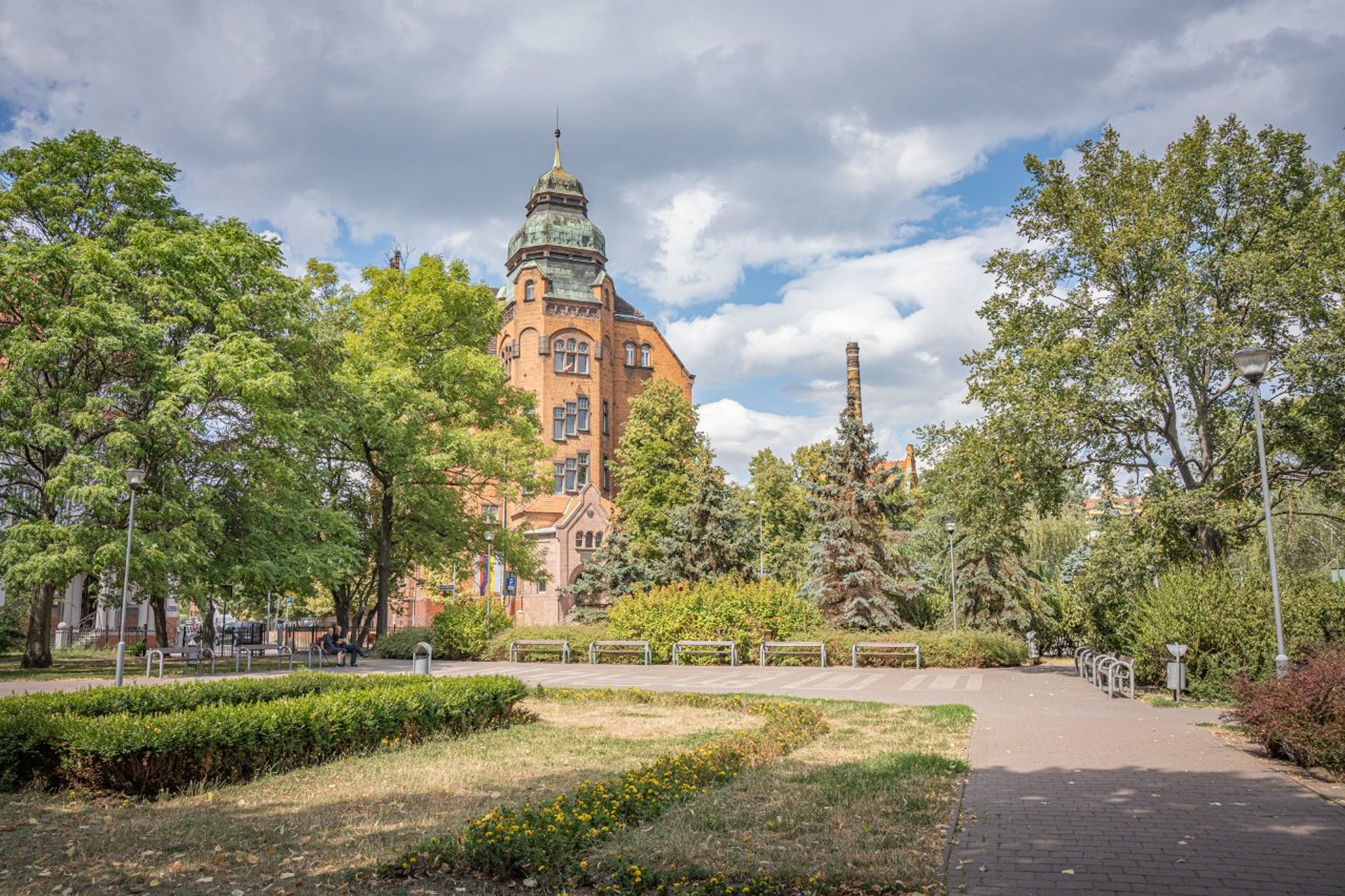 Park Marii Skłodowskiej Curie powstał po II wojnie światowej. Usytuowany w miejscu dawnego placu Bergera i powiększony o teren przedwojennych kamienic. W centrum tego kameralnego parku stoi zabytkowa fontanna z XIX wieku, wiekowe drzewa oraz klomby kwiatów i ławeczki. Park sąsiaduje z placem zabaw. W pobliżu jest budynek rektoratu Politechniki Poznańskiej