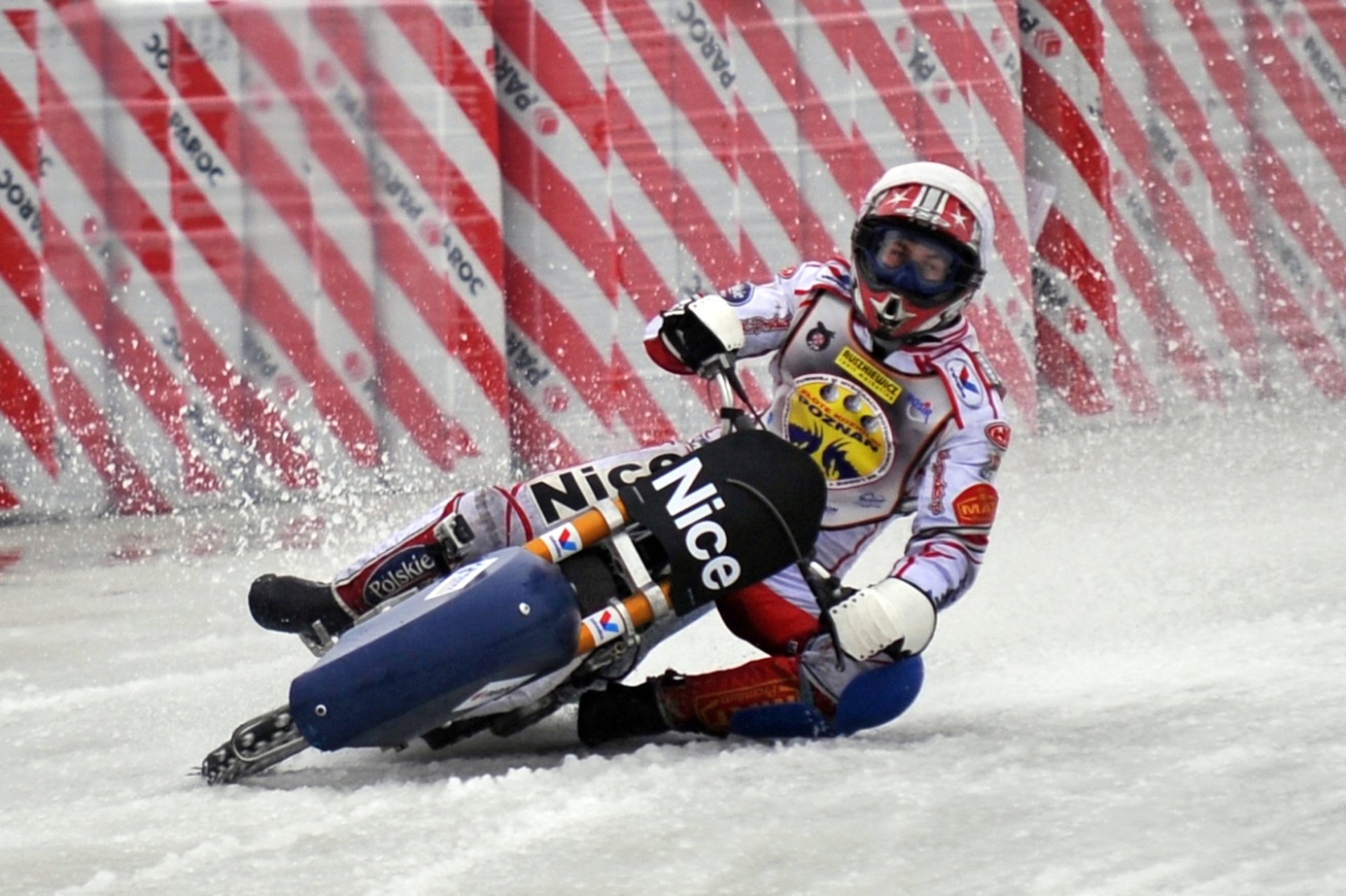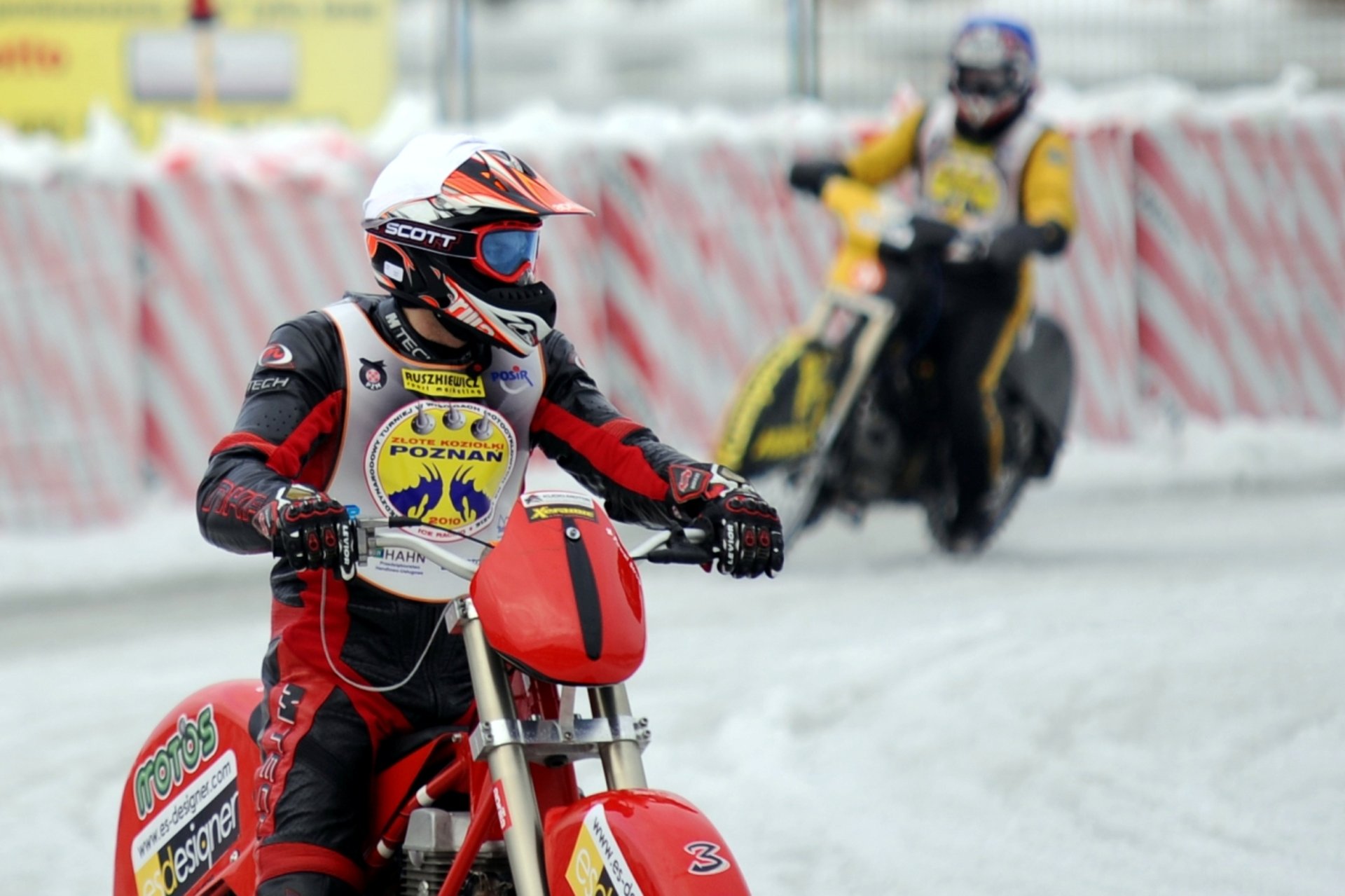 Zawody żużla na lodzie "Ice Racing" o Złote Koziołko. Jezioro Maltańskie, 8.01.2011. Autor: Bernard Guziałek.
