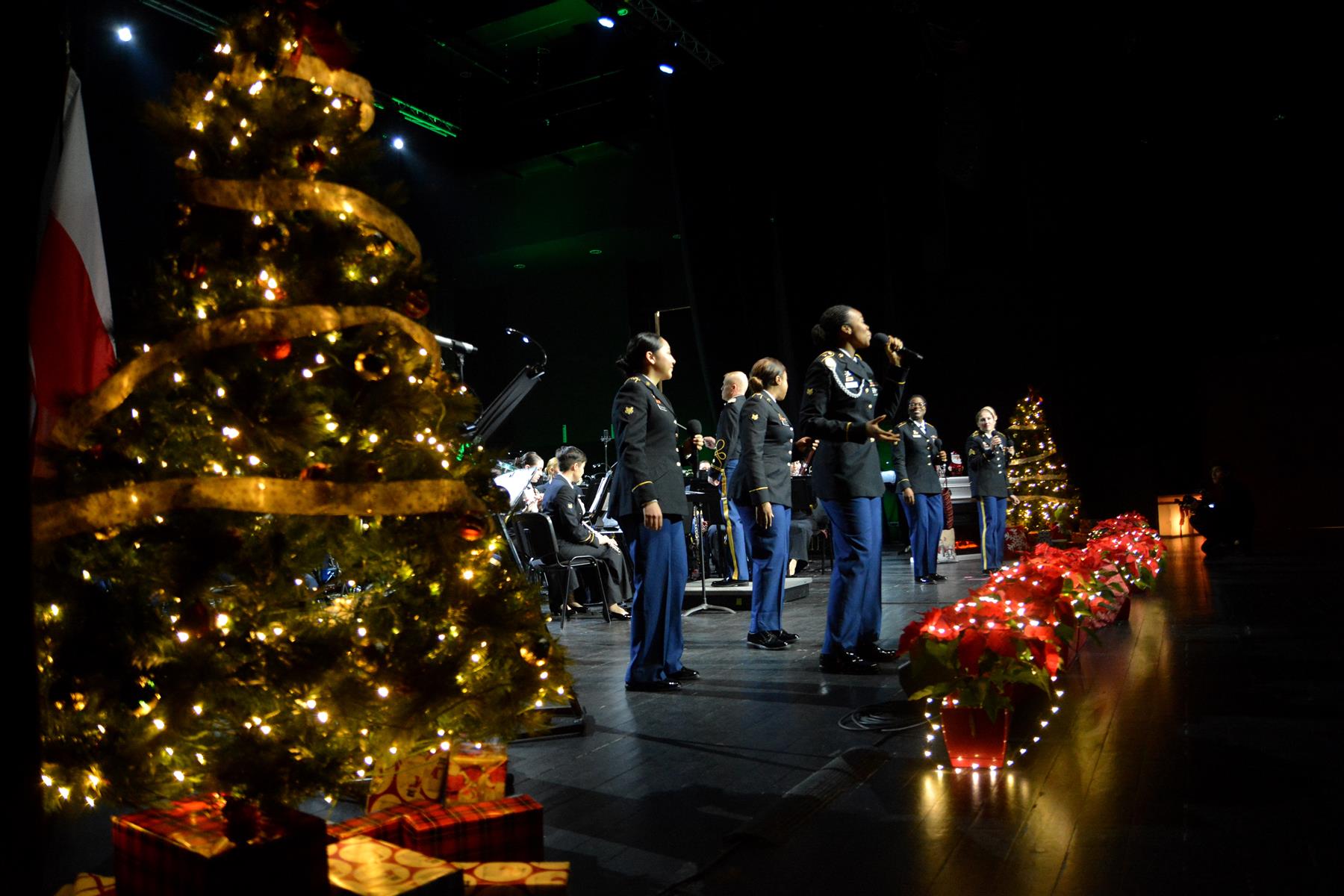 Podczas występu amerykańska orkiestra i chór pod przywództwem majora Randy'ego Bartela zaprezentował kilkanaście świątecznych utworów przeplatanych amerykańskimi standardami muzycznymi. Nie zabrakło odniesień filmowych. Podczas wykonywania piosenki "You're Mean One, Mr. Grinch" na scenie pojawił się... zielony Grinch. To postać z bajki, która nie pała wielką miłością do świąt Bożego Narodzenia i chciałaby zepsuć wszystkim ten radosny okres. Podczas koncertu na szczęście to się nie udało. Publiczność żywiołowa reagowała na kolejne utwory nagradzając każdy gromkimi brawami, a podczas wykonywania "Silent Night" włączyła się w śpiewanie tej międzynarodowej kolędy. Świetnie wybrzmiała również kompozycja "Santa Claus Is Comin' To Town" w aranżacji przypominającej ten utwór wykonywany kiedyś przez Bruce'a Springsteena.
