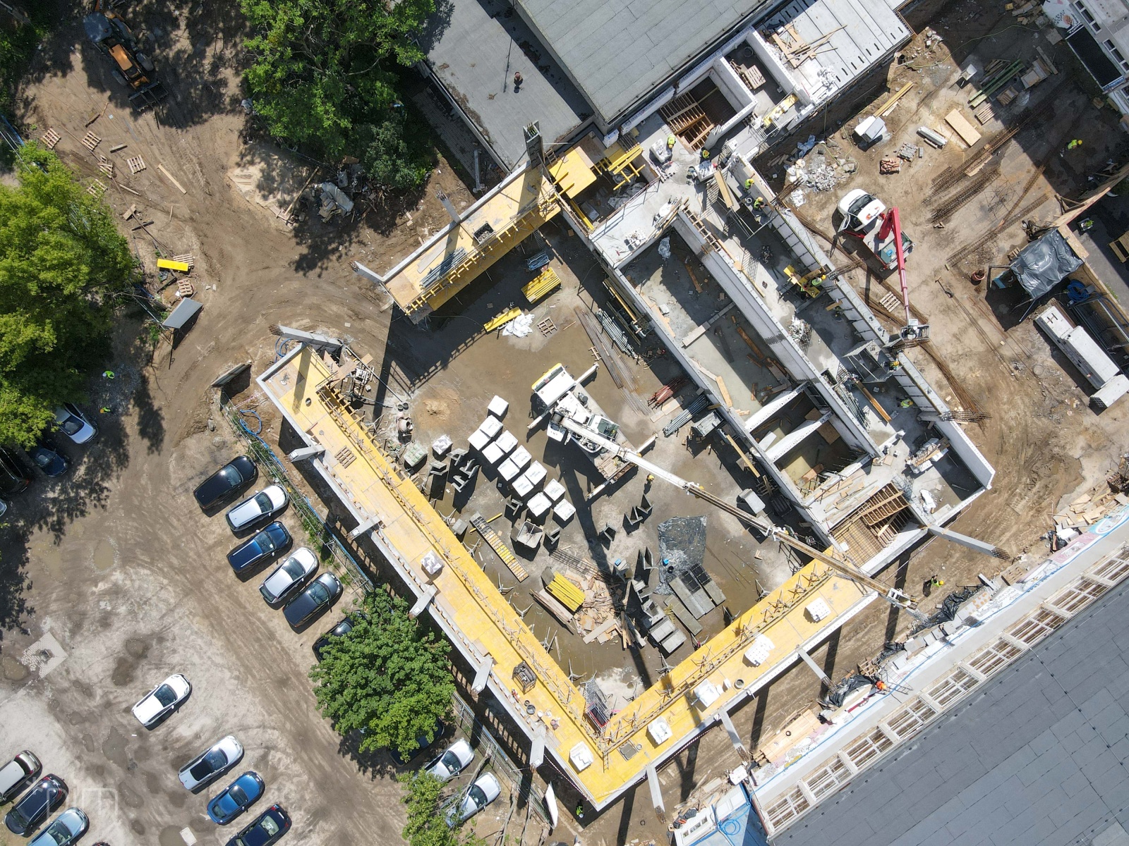 Do tej pory powstały m.in. schody, a także zakończono prace związane z budową kanalizacji deszczowej - została doprowadzona do miejsca, w którym zostanie wykonany zbiornik retencyjny. Aktualnie wykonawca zajmuje się również budową łącznika hali sportowej z głównym budynkiem szkoły.