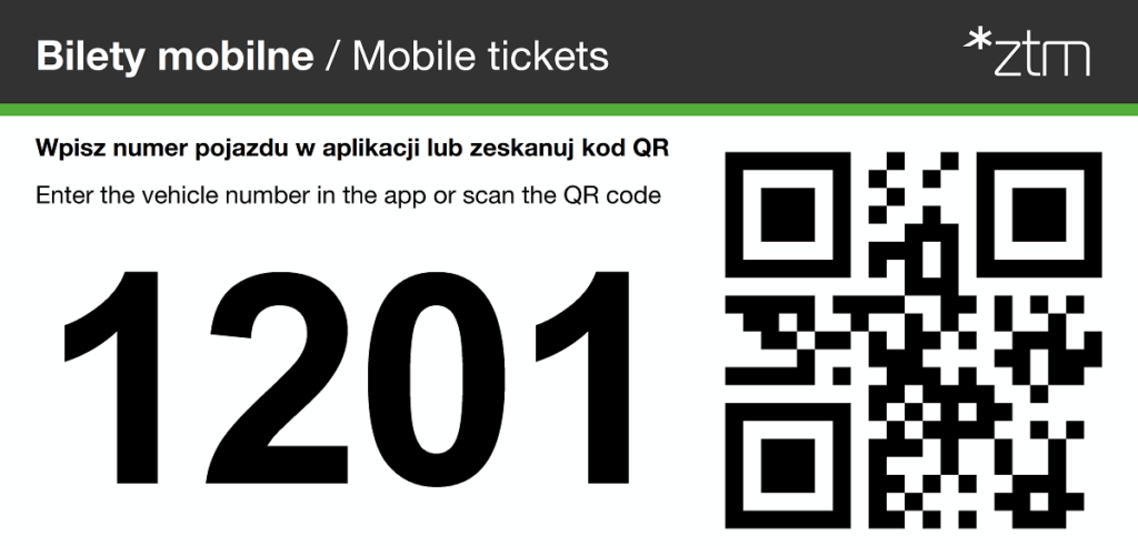 - skanując kod QR umieszczony w pojeździe (nad oknami, naprzeciwko drzwi)