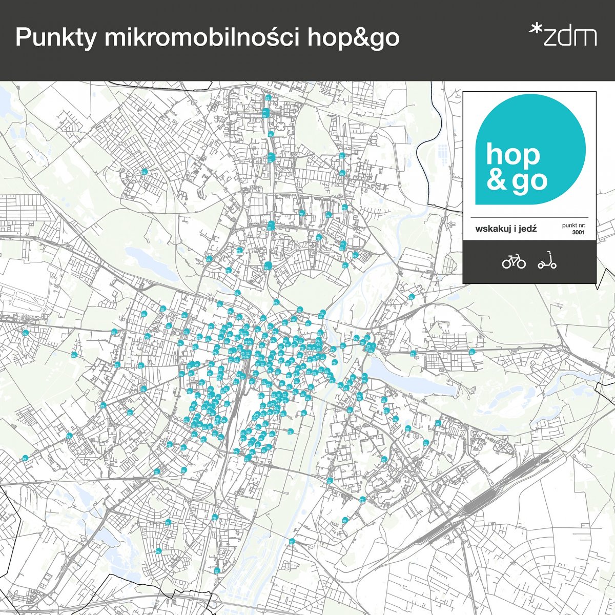 Przy poznańskich ulicach jest już dostępnych 263 punktów hop&go. Zostały one wyznaczone w większości na obszarze objętym płatnym parkowaniem, a więc na Starym Mieście, Jeżycach, Wildzie i Łazarzu. Pojedyncze punkty znajdują się także poza śródmieściem, m.in. przy głównych ulicach czy węzłach przesiadkowych komunikacji publicznej.