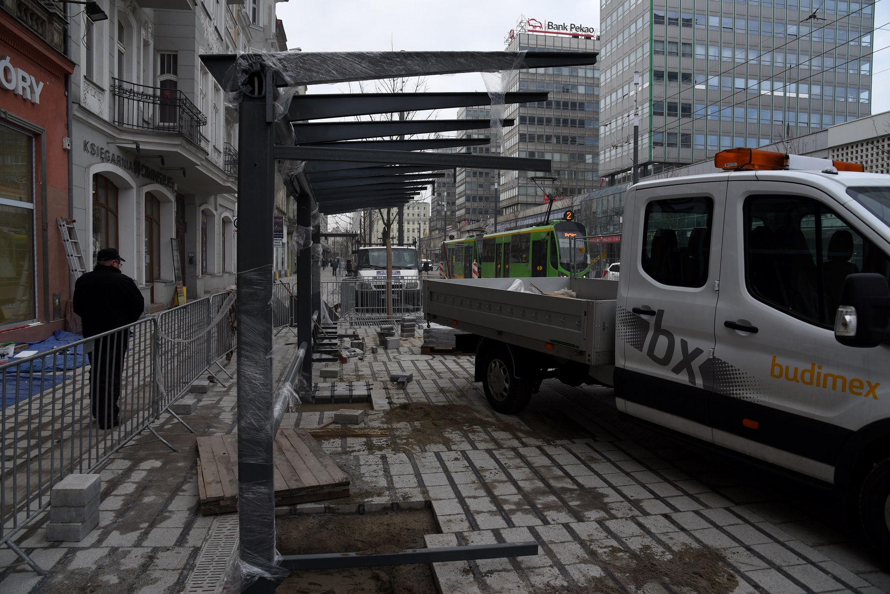 Trwa montaż wiaty nowego przystanku tramwajowego. Nowy przystanek będzie nosić nazwę "Ratajczaka", bowiem zlokalizowany będzie tuż przed skrzyżowaniem ulic Św. Marcin i Ratajczaka. Mniej więcej w tym miejscu pasażerowie mieli kiedyś możliwość wsiadania i wysiadania z tramwaju, ale przystanek ten został zlikwidowany w latach 70. Ten nowo wybudowany będzie typu wiedeńskiego. Będzie można z niego korzystać po zakończeniu odbiorów, czyli prawdopodobnie jeszcze w marcu. W przyszłości, po wybudowaniu trasy tramwajowej wzdłuż ul. Ratajczaka, będzie można na nim wsiąść w tramwaj jadący na Wildę i Dębiec, co znacząco skróci czas dojazdu na południe Poznania.