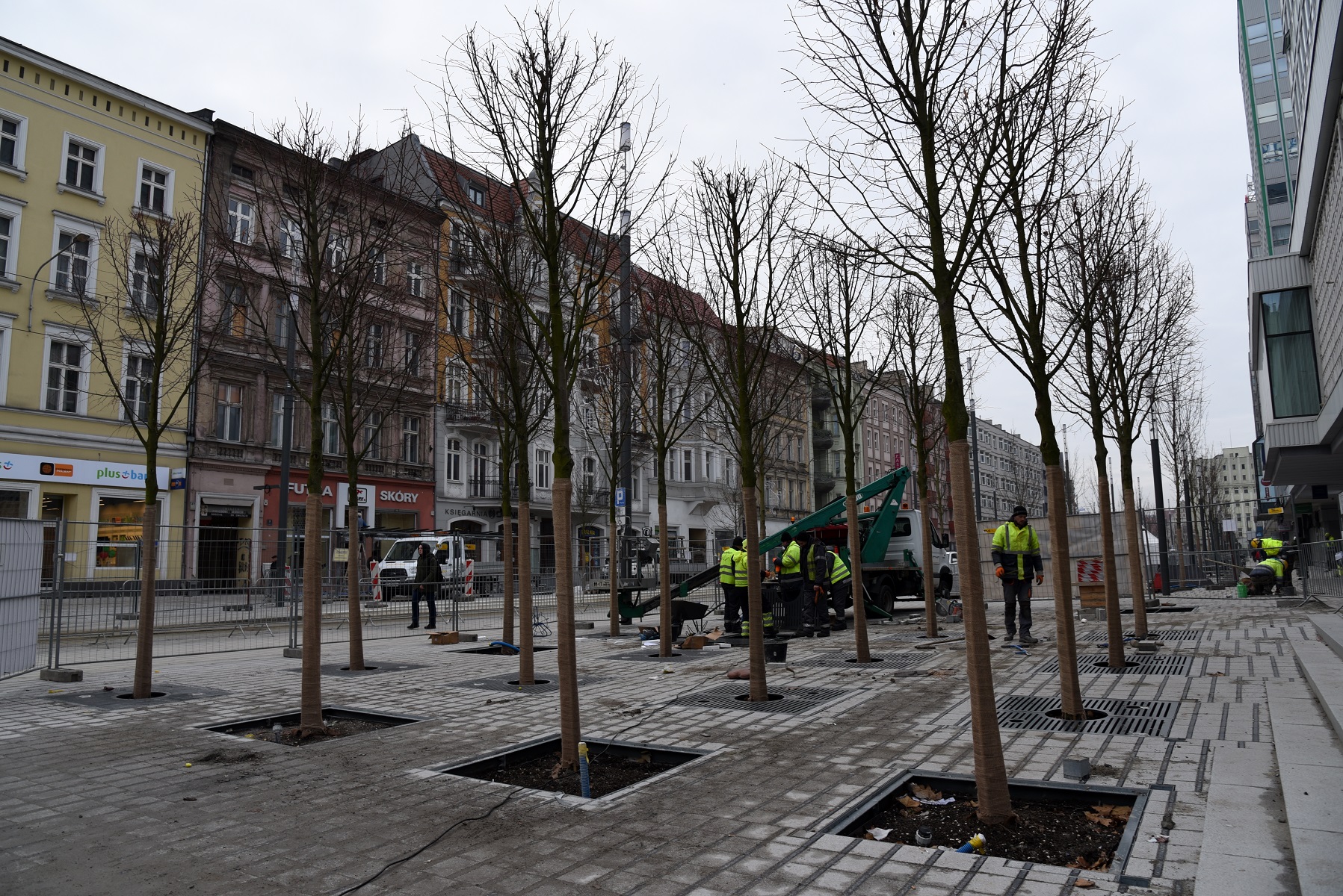 Od zeszłego roku stoi już kilkadziesiąt drzew - klonów pospolitych i lip holenderskich. Wyrośnięte już drzewa posadzone zostały w specjalnie dla nich przygotowanych miejscach wyposażonych w systemy antykompresyjne. Są to konstrukcje pozwalające na rozwój systemów korzeniowych bez kolizji i zagrożenia dla infrastruktury podziemnej oraz umożliwiające podlewanie drzew. Wszystkie zabezpieczone są od ziemi specjalnymi osłonami. Drzewa będzie można w pełni podziwiać na wiosnę, kiedy się zazielenią. Wtedy też uruchomione zostaną fontanny. W okresie letnim, po stronie Alf, staną także ogródki gastronomiczne.