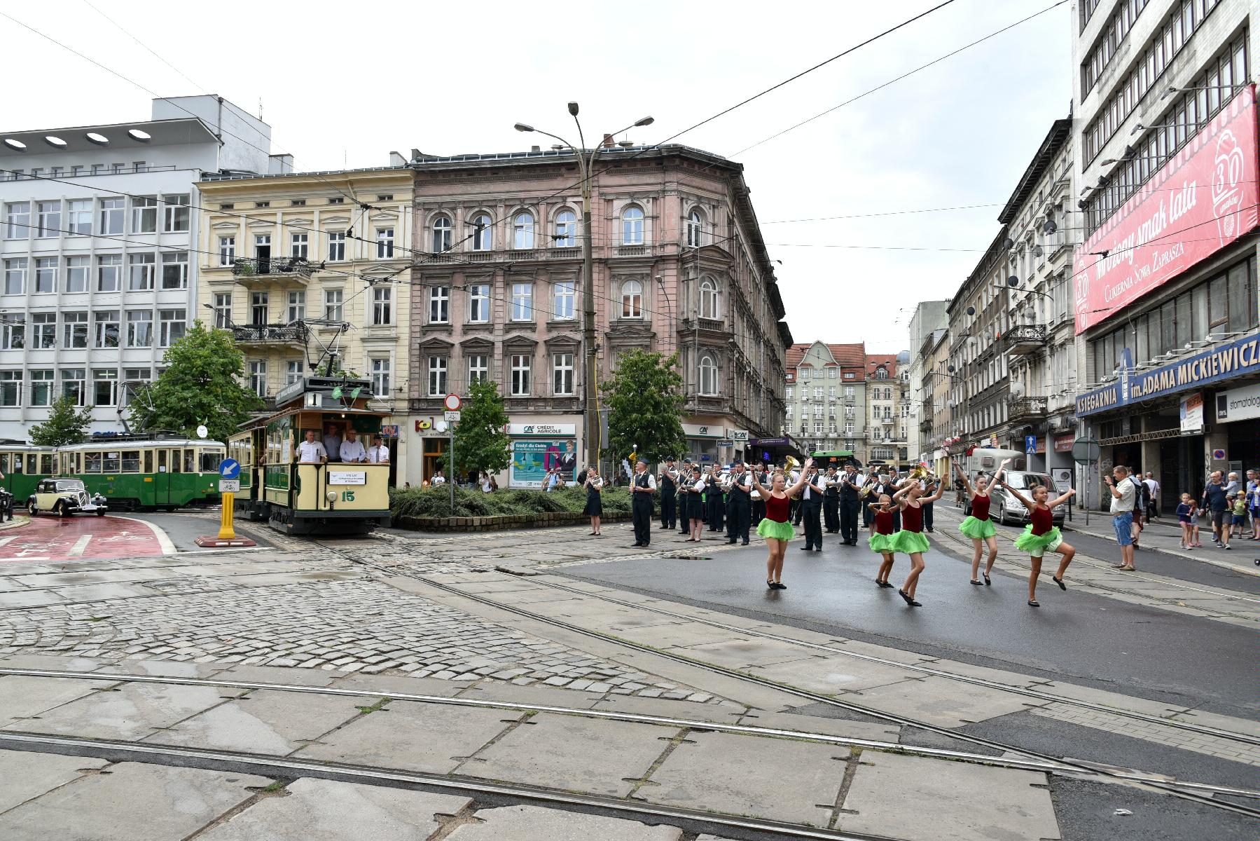 Łącznie w paradzie jubileuszowej wzięło udział 25 pojazdów - 13 tramwajów i 12 autobusów. Jako pierwsze wyjechał wagon konny i skład typ I+WD. Następnie wagony N+ND+ND, 102N, 102Na, 105N+105N i GT6. Z kolei wszystkie autobusy, które jechały jezdnią, zrównały się z początkiem kolumny tramwajowej. Po wyjeździe autobusów, wyruszyły pozostałe tramwaje: GT8, GT8ZR, Moderus Alfa, Moderus Beta, RT6, Combino, Tramino i Gamma. W takim szyku parada przejechała przez rondo Kaponiera i ulicę Święty Marcin aż do Gwarnej. Za ulicą Gwarną, na nowej części ulicy Święty Marcin szyk parady zmienił się i pojazdy jechały już jeden za drugim.