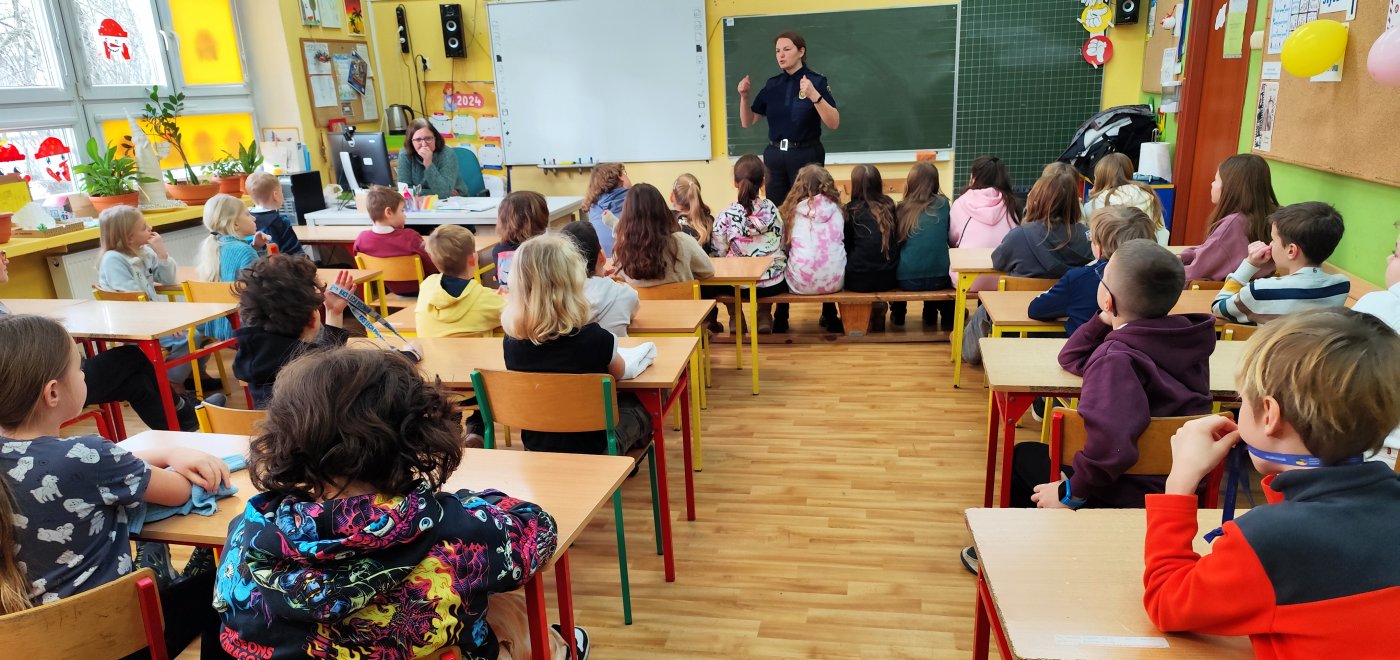 Strażniczki z Zespołu Profilaktyki podczas spotkań z uczniami przypominały o bezpiecznych zachowaniach, niezależnie od miejsca i sposobu spędzania wolnego od szkolnych obowiązków czasu. Przypomniały o koniecznej rozwadze i ostrożności, o odpowiedzialnym zachowaniu - większość czasu będą spędzać bez bezpośredniej opieki osób dorosłych. Rozmawiano o zasadach bezpieczeństwa podczas zabaw i zimowej aktywności, ale także podczas domowych lub na półkolonii zajęć z rówieśnikami, albo w miejskich przestrzeniach publicznych, również podczas korzystania z miejskiej komunikacji. Ważnym elementem osobistego bezpieczeństwa jest zachowanie ostrożności i niepodejmowanie niepożądanego kontaktu z inicjatywy nieznanych osób.