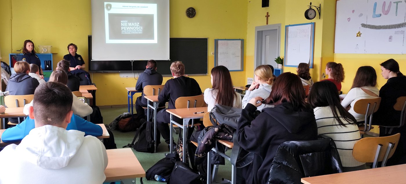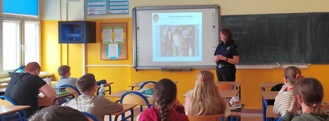 Sieć internetowa, to ogromna światowa pajęczyna, w której również poruszają się młodzi ludzie, często niezorientowani na zagrożenia mogące w niej czyhać. Dlatego też, pamiętając o tym w szkołach, odbywają się spotkania strażniczek z Zespołu Profilaktyki z dziećmi i młodzieżą, których tematem jest bezpieczeństwo korzystających z sieci - w ramach inicjatyw DBI 2025. Przybliżenie, choćby pobieżne, podstawowych zasad ma na celu zapobieganie zagrożeniom i ich następstwom związanych z korzystaniem z zasobów światowego Internetu.
