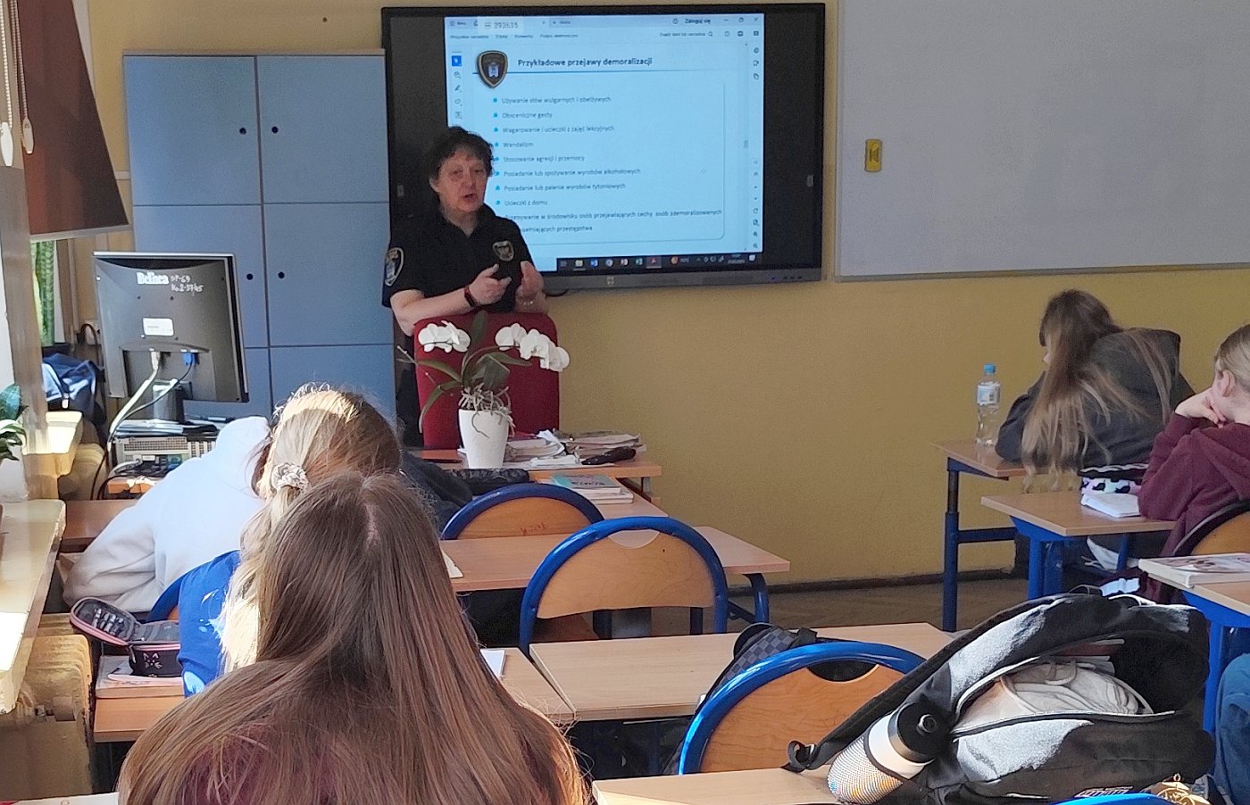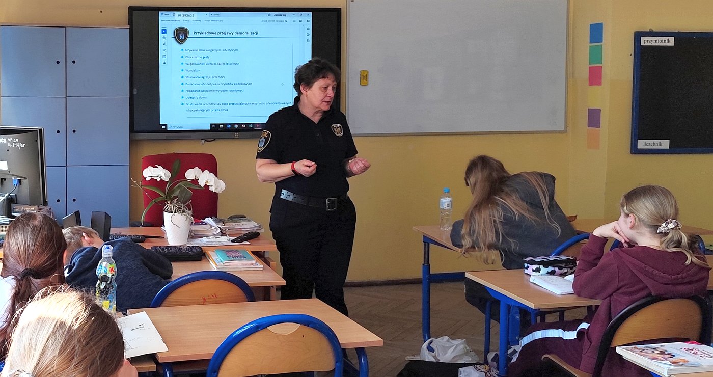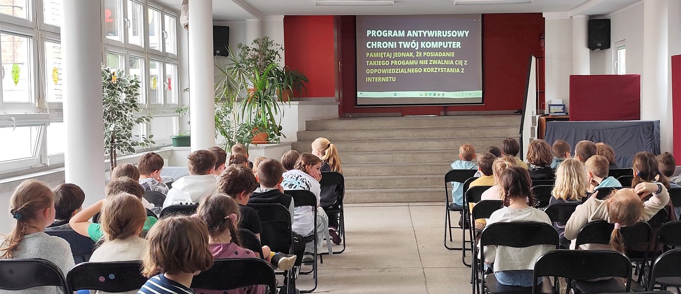 Na zaproszenie dyrekcji Szkół Podstawowych nr 10, nr 69 i nr 90 strażniczka z Zespołu Profilaktyki uczestniczyła w spotkaniach poświęconych cyberzagrożeniom i cyberprzemocy. Internet, to miejsce z którego korzystają miliony osób, ale również miejsce, gdzie możemy znaleźć mnóstwo informacji, wiadomości, filmów oraz spotkać inne osoby. Podczas rozmów przedstawiono największe zagrożenia płynące z możliwości kontaktów z osobami nieznajomymi w sieci. Przypomniano, że nie powinno się rozmawiać na czatach i poprzez komunikatory z osobami, których nie znamy w realu i z którymi na co dzień nie mamy kontaktów. Korzystając z internetu również nie powinno się podawać żadnych informacji o sobie, numeru telefonu, adresów i innych danych osobowych. Przypomniano uczniom również o tym, że osoba z która się kontaktujemy, niekoniecznie musi być tą osobą, za którą się podaje - poprzez internet jej nie widzimy. Podczas spotkania poruszono również zagrożenia płynące z udostępniania zdjęć, zarówno swoich jaki i innych osób, nie tylko przez komputer, ale również za pomocą telefonu. Przedstawiono także problematykę odpowiedzialności prawnej związanej z zabronionymi czynami, które mogą mieć miejsce w sieci: kradzież tożsamości lub włamanie na czyjeś konto, hejt, stosowanie form przemocy w sieci.