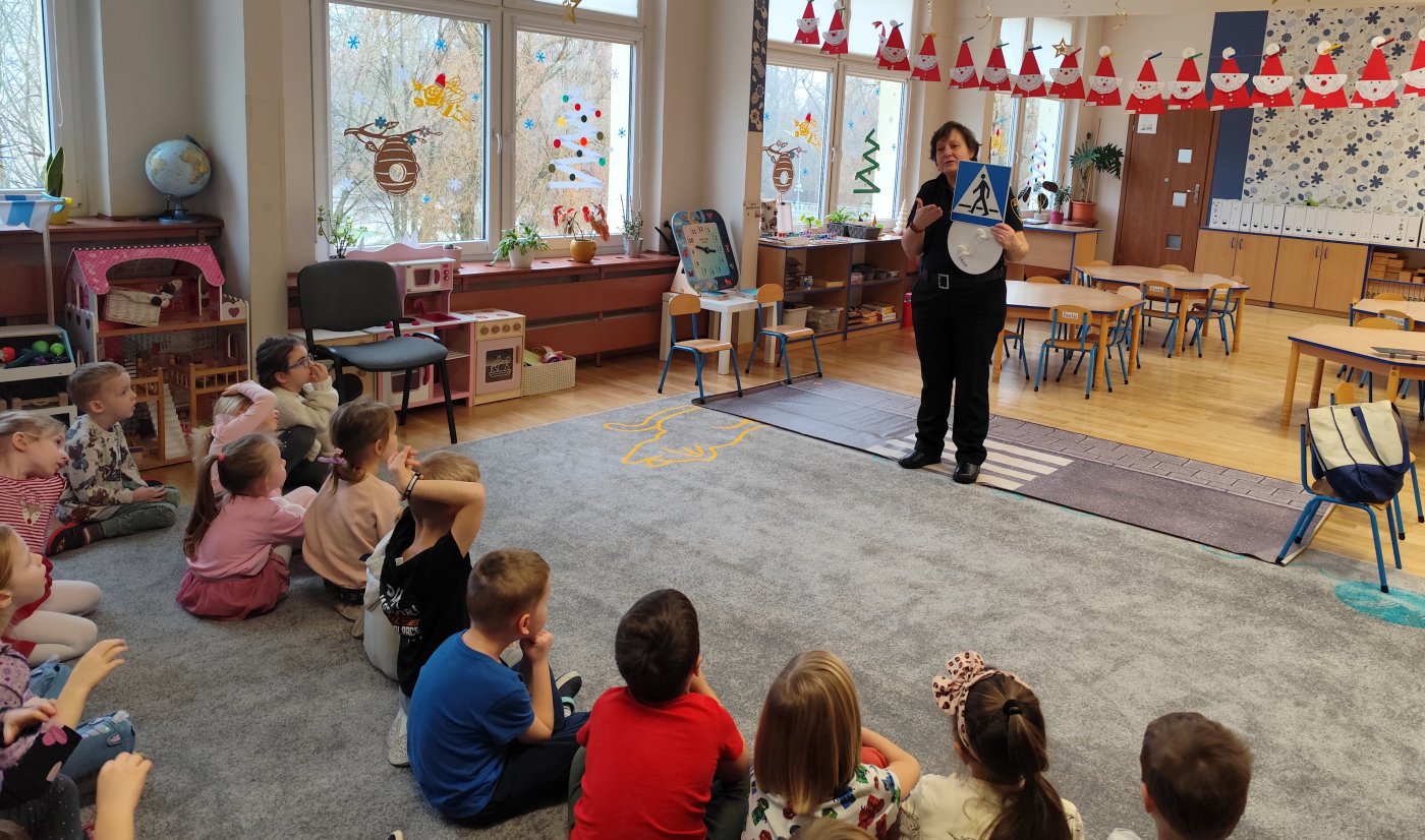 Przedszkolacy nie mają planowych ferii, ale mogą również mieć "rodzinną przerwę" w zajęciach. Stąd, podobnie do uczniów, uczestniczyli w spotkaniach ze strażniczkami, które przekazały im informacje o bezpiecznych formach aktywnego, zimowego wypoczynku.