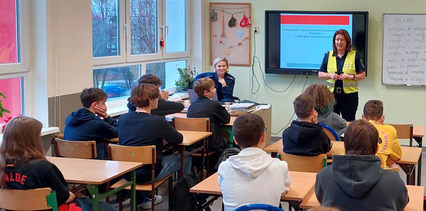 Miejscy strażnicy wraz z policjantkami z KP Nowe Miasto spotkali się z młodzieżą na zajęciach w Szkole Podstawowej nr 19 oraz w Państwowym Liceum Sztuk Plastycznych. Spotkania były poświęcone tematyce używek psychoaktywnych oraz związanej z nimi prawnej odpowiedzialności. Zahamowanie dynamiki wzrostu stosowania używek przez młodzież, poprzez podniesienie świadomości o szkodliwości zdrowotnej, osobistej i społecznej działania używek (papierosy, alkohol), w szczególności narkotyków, dopalaczy, to jeden z priorytetów działań profilaktycznych wielu podmiotów. Również wyjaśniono i omówiono prawne środki zapobiegania i zwalczania demoralizacji oraz przestępczości nieletnich. Prawo w tym zakresie określa, że w postępowaniu z nieletnimi należy kierować się przede wszystkim jego dobrem, dążąc do osiągnięcia korzystnych zmian po jego sytuacji konfliktu z prawem.