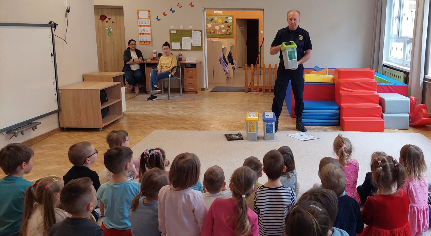 W Przedszkolu nr 114 "Pinokio" odbyły się spotkania dzieci ze strażnikami, promujące zachowania proekologiczne. Przeprowadzone zajęcia miały na celu: