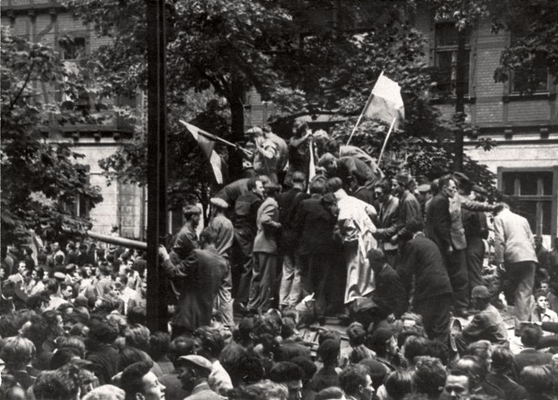godz. 9.00-11.00 Na placu przed Zamkiem (siedzibą Miejskiej Rady Narodowej) zgromadziło się ok. 100 tys. ludzi. Wyłoniona z tłumu delegacja udała się na rozmowy z przewodniczącym MRN, Franciszkiem Frąckowiakiem. W czasie rozmów delegaci domagali się przyjazdu premiera Józefa Cyrankiewicza lub I sekretarza KC PZPR Edwarda Ochaba. Grupa manifestantów, która weszła do Zamku, wywiesiła na maszcie znajdującym się na dachu budynku białą flagę.