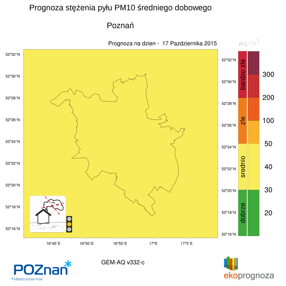 W dniach 17 - 19 padziernika, na terenie Poznania prognozowane są niekorzystne warunki meteorologiczne sprzyjające powstawaniu przekroczeń dopuszczalnych wartości pyłu zawieszonego (PM10) w powietrzu.