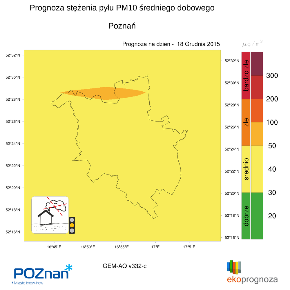 W dniach 18-20 grudnia, na terenie Poznania prognozowane są niekorzystne warunki meteorologiczne sprzyjające powstawaniu przekroczeń dopuszczalnych wartości pyłu zawieszonego (PM10) w powietrzu.