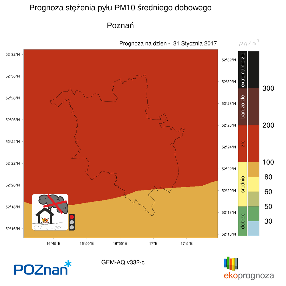 31 stycznia i 1 lutego prognozowane są bardzo niekorzystne warunki atmosferyczne, sprzyjające kumulowaniu się bardzo wysokich wartości zanieczyszczeń. Mimo wysokich stężeń można przebywać na zewnątrz, jednak niewskazany jest wysiłek w trakcie aktywności. Należy zaprzestać spalania jakichkolwiek paliw stałych (także drewna). Zwróć uwagę sąsiadom, że z powodu niekorzystnych warunków atmosferycznych konieczne jest całkowite zaprzestanie spalania paliw stałych w piecach i kominkach - korzystaj z ciepła z sieci ciepłowniczej, gazu lub elektryczności