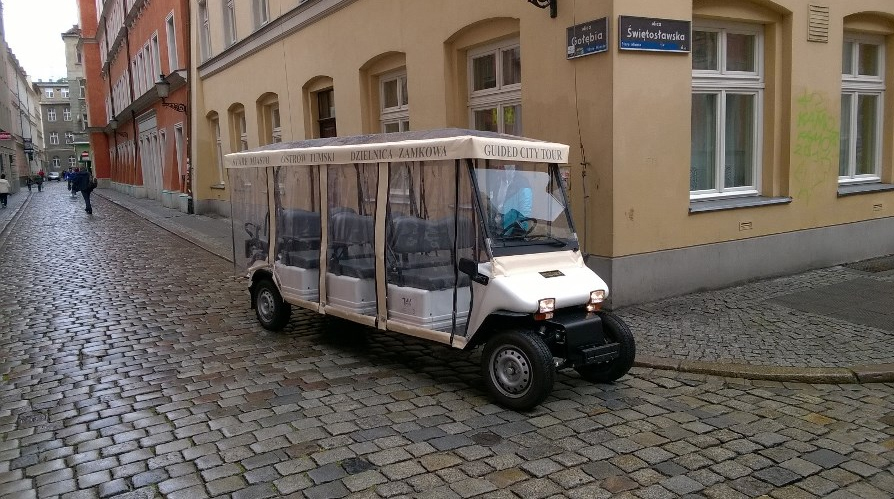 Poznańskie elektryczne pojazdy, których organizatorem jest firma Wójcik Tours, zabierają 7 turystów, plus kierowcę, i jeżdżą po Ostrowie Tumskim, Starym Mieście i dawnej dzielnicy zamkowej. O atrakcjach poszczególnych części miasta zwiedzający dowiadują się z nagranego głosu przewodnika. Wersji językowych nagrania jest siedem, oprócz polskiej są to: angielska, niemiecka, włoska, hiszpańska, francuska i rosyjska. Czas trwania jednej podróży to około pół godziny.