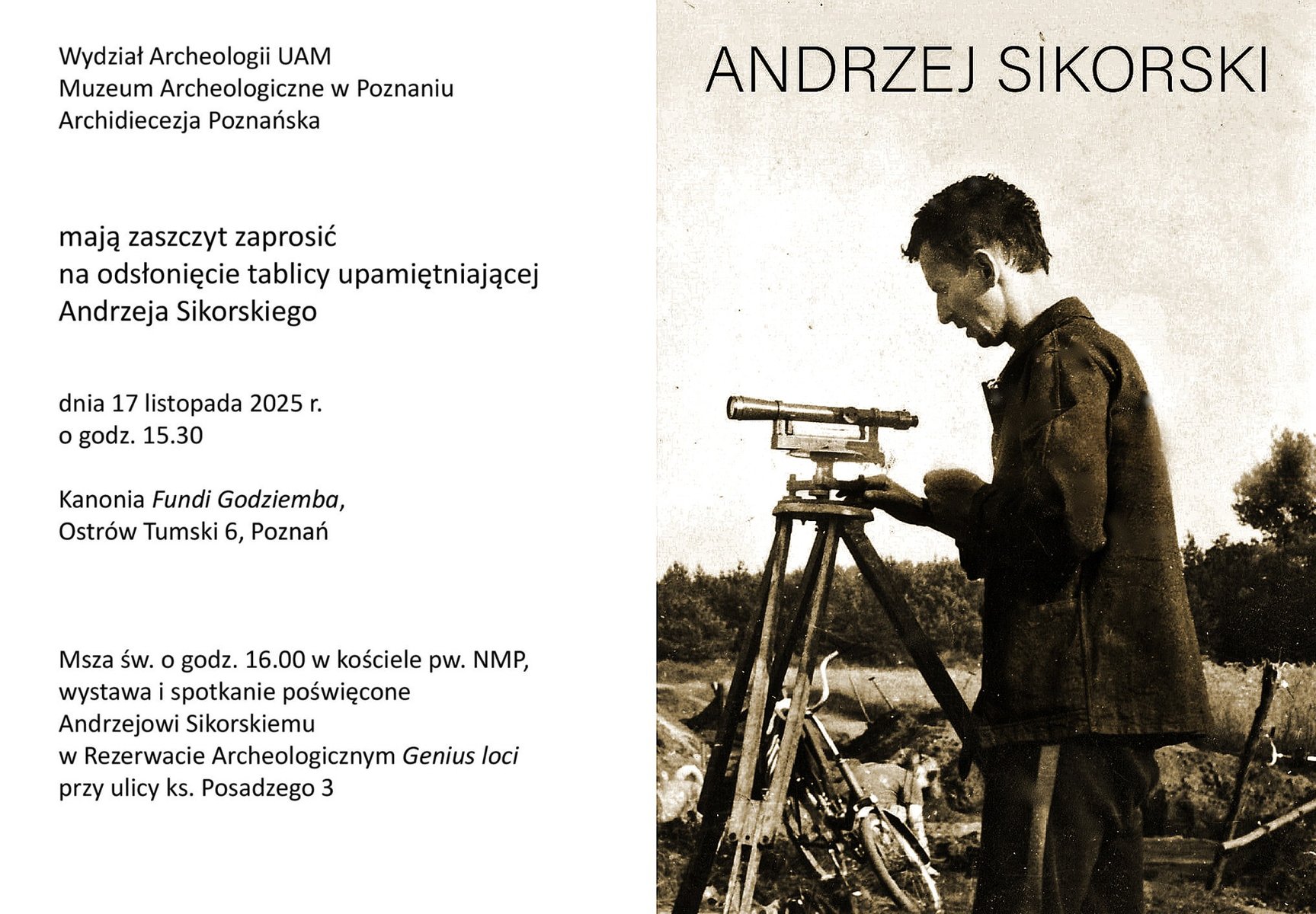 W dniu 17 listopada 2025 r. o godz. 15.30 przy kanonii Fundi Godziemba  (dawnej bazie archeologicznej) na Ostrowie Tumskim 6 w Poznaniu planowana jest uroczystość odsłonięcia tablicy upamiętniającej Archeologa, Poetę, Dziennikarza i Wykładowcę akademickiego Andrzeja Sikorskiego  (1953-2023). O godz. 16.00 odbędzie się Msza św. w kościele NMP oraz wystawa poświęcona Andrzejowi Sikorskiemu i spotkanie wspominkowe w Rezerwacie archeologicznym "Genius loci" przy ul. ks. I. Posadzego 5.