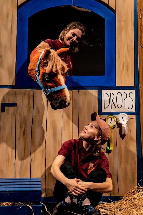 Twórczynie spektaklu, zainspirowane mądrością i wrażliwością tych stworzeń, postanowiły opowiedzieć historie budzących podziw ale i respekt, wyjątkowych zwierząt. Ich losy zostały splecione ze sobą w jedną historię. Tak powstał nasz koń Drops. Razem z jego przyjaciółmi, dziewczynką Alicją oraz kotem Chrupkiem, Drops odkrywa, na czym polega budowanie relacji i prawdziwa przyjaźń. Alicja zaś oswaja się z nowymi emocjami, takimi jak zazdrość i gniew.