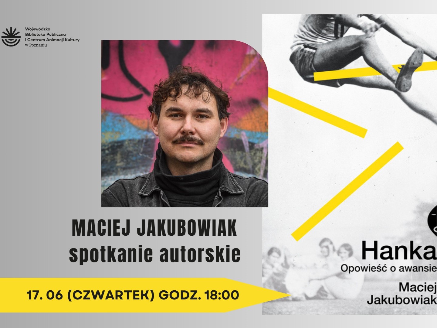 Wojewódzka Biblioteka Publiczna i Centrum Animacji Kultury w Poznaniu serdecznie zaprasza na spotkanie autorskie z Maciejem Jakubowiakiem. Rozmowa toczyć się będzie wokół książki "HANKA. Opowieść o awansie" wydanej przez Wydawnictwo Czarne. Spotkanie poprowadzi Remigiusz Koziński.
