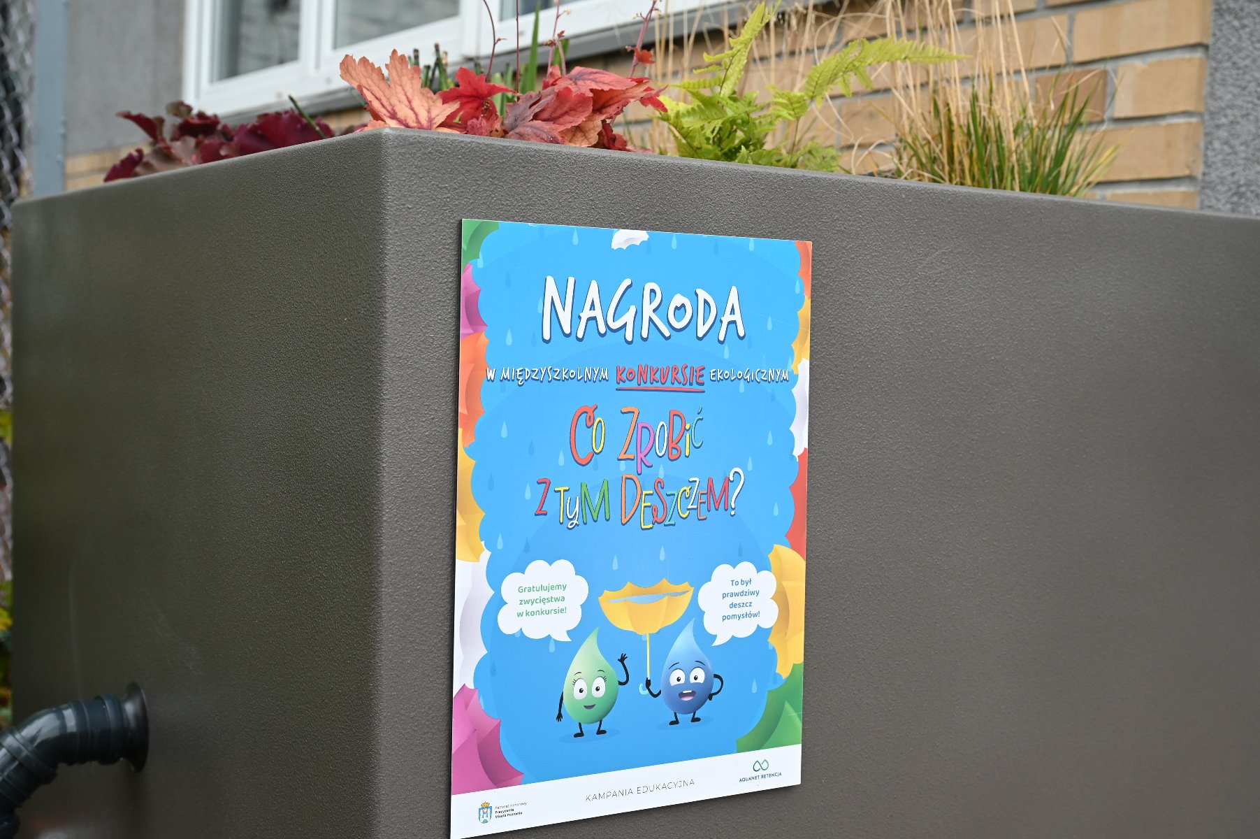 Ogród deszczowy w Szkole Podstawowej nr 90 przy ul. Chociszewskiego to nagroda w konkursie plastycznym organizowanym przez spółkę Aquanet Retencja. Zabawa była częścią kampanii edukacyjnej "Co zrobić z tym deszczem?".