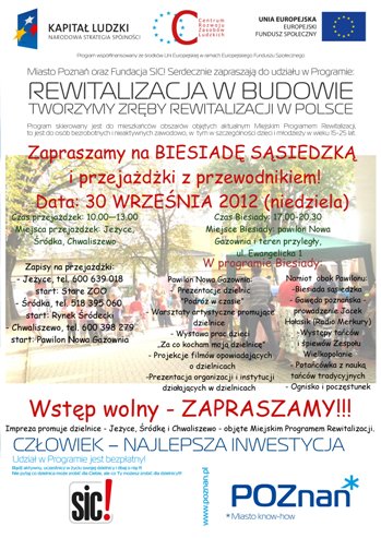 Organizatorem wydarzenia jest Fundacja SIC!, będąca partnerem Oddziału Rewitalizacji Urzędu Miasta Poznania w realizacji Programu "REWITALIZACJA W BUDOWIE - TWORZYMY ZRĘBY REWITALIZACJI W POLSCE" w ramach Programu Operacyjnego Kapitał Ludzki ze środków Unii Europejskiej.