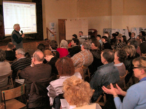 Pod koniec spotkania dr Krzysztof Podemski zaprezentował wyniki badań socjologicznych przeprowadzonych w ramach Miejskiego Programu Rewitalizacji, zebranych w opracowaniu pt."Społeczny portret Śródki" wykonanym przez firmę Q-MR Market Research.