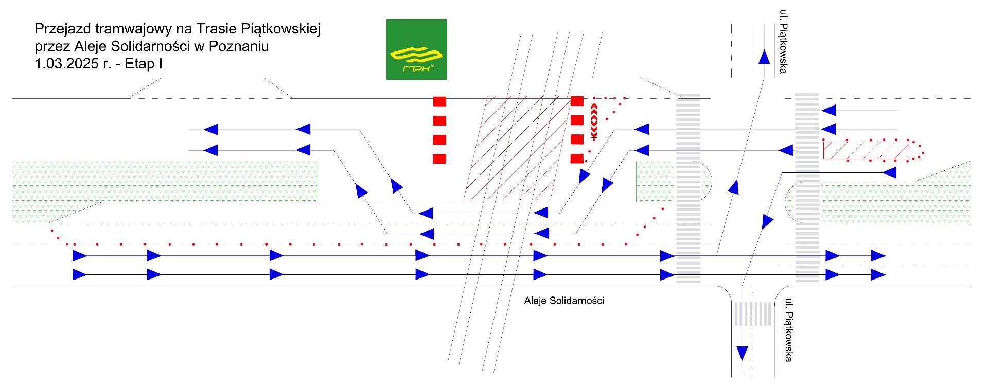 Wykorzystując czas, gdy z uwagi na prace na al. Wielkopolskiej zamknięta dla ruchu tramwajowego została tzw. trasa piątkowska - przeprowadzony zostanie remont zużytego torowiska na przejeździe w Al. Solidarności. Wymienione tam zostaną nie tylko tory, ale także znajdująca się przy nich nawierzchnia drogowa. W efekcie przeprowadzonych prac poruszanie się w tym rejonie stanie się bardziej bezpieczne i komfortowe dla wszystkich uczestników ruchu.