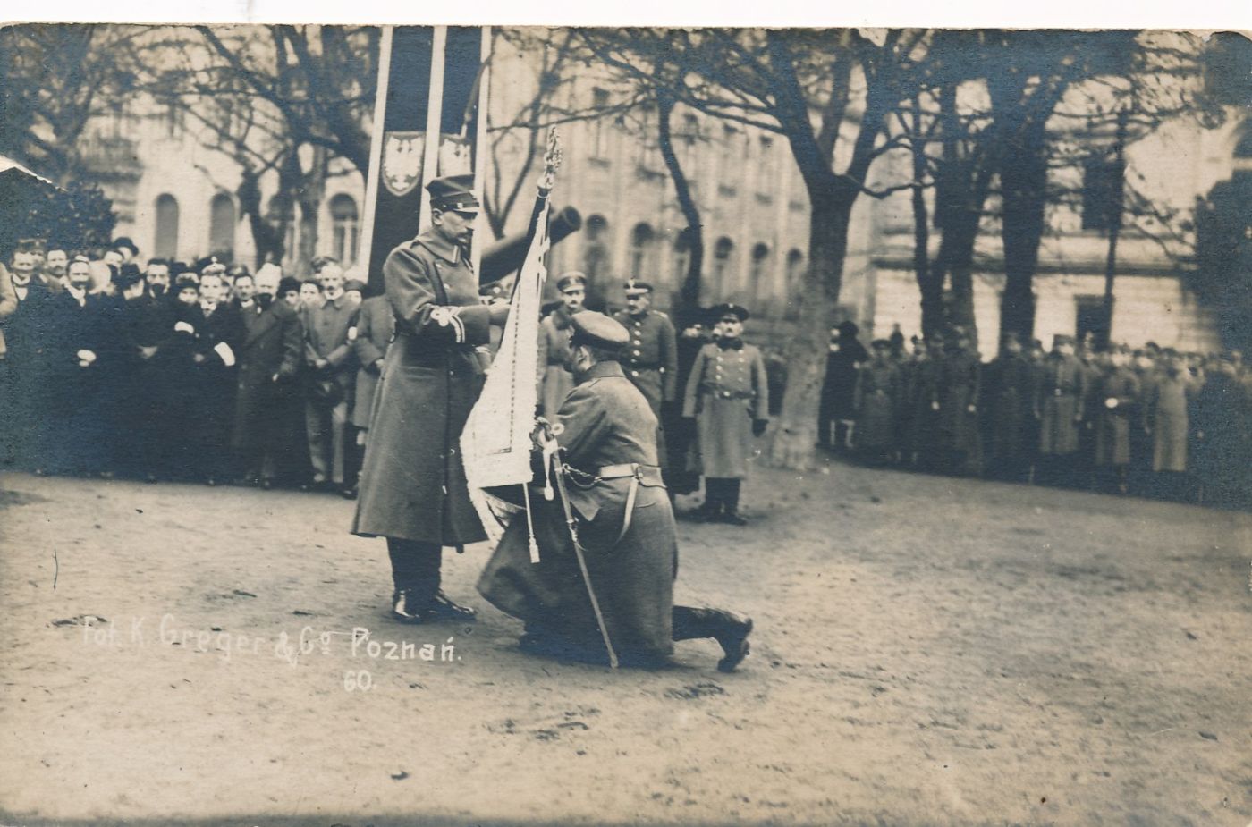 23 lutego 1919 roku miasto Poznań i jego mieszkańcy oddali Straży Ludowej zasłużony hołd. Tego dnia na płycie placu Wolności (choć nominalnie jeszcze Wilhelmowskiego) zebrali się w sile 4 tys. strażnicy służący w poznańskim garnizonie, aby złożyć uroczystą przysięgę oraz odebrać nowy sztandar ufundowany przez Stowarzyszenie Wielkopolanek. Świadkami ceremonii była gęsta ciżba poznaniaków, którzy przyszli tutaj dla swoich ojców, braci, mężów i sąsiadów, a także cywilne i wojskowe władze oswobodzonej dzielnicy, wśród których brylowali komisarze Naczelnej Rady Ludowej, generał Józef Dowbor-Muśnicki oraz przedstawiciel misji koalicyjnej przebywającej w Poznaniu generał Charles Joseph Dupont.
